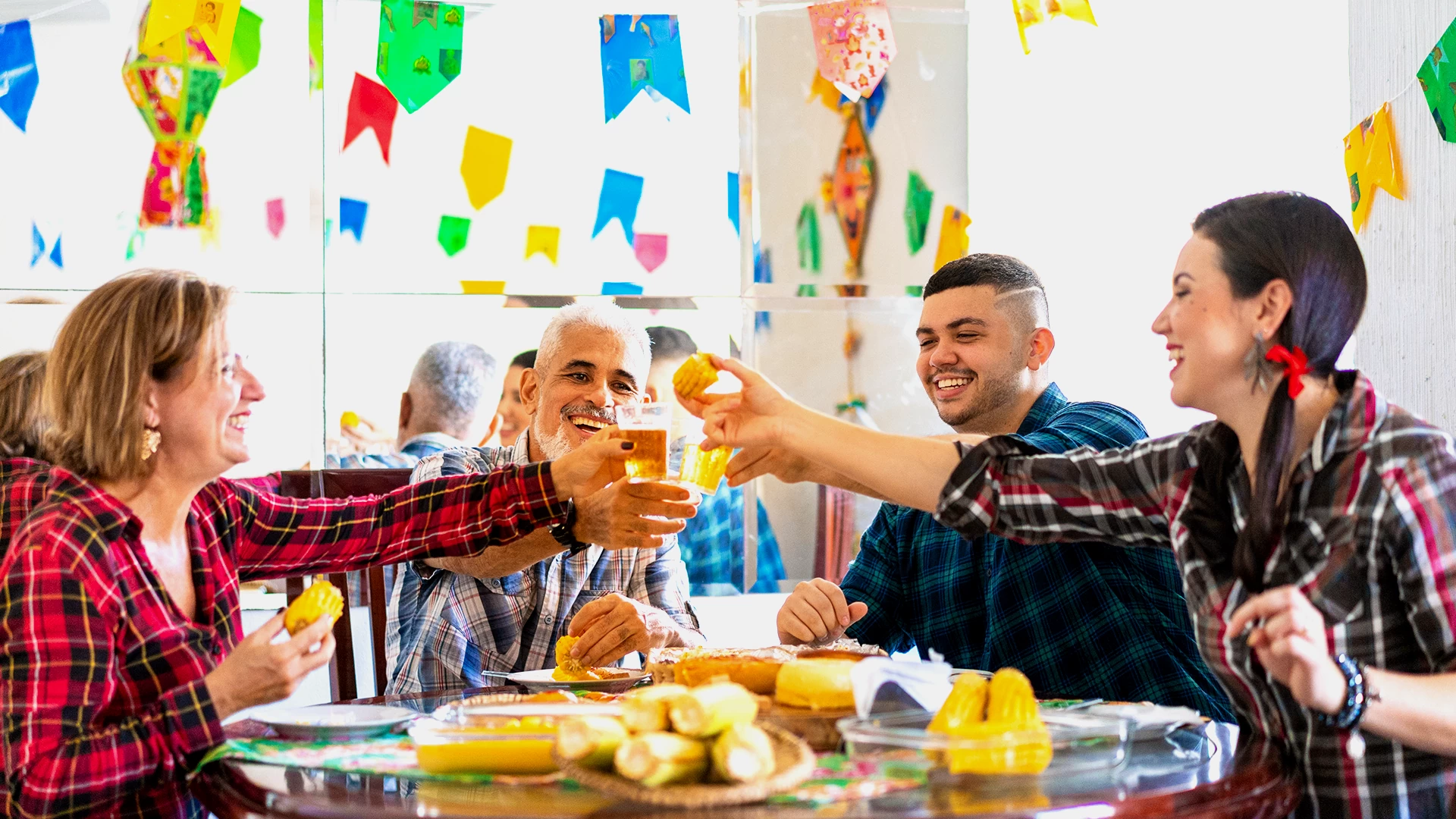 Sim, é possível ter churrasco na festa junina! A Santa Massa prova que essa combinação é um sucesso. Pães de alho, carnes suculentas e acompanhamentos criativos, tudo com aquele toque junino na decoração. Monte um churrasco que é uma festa à parte!