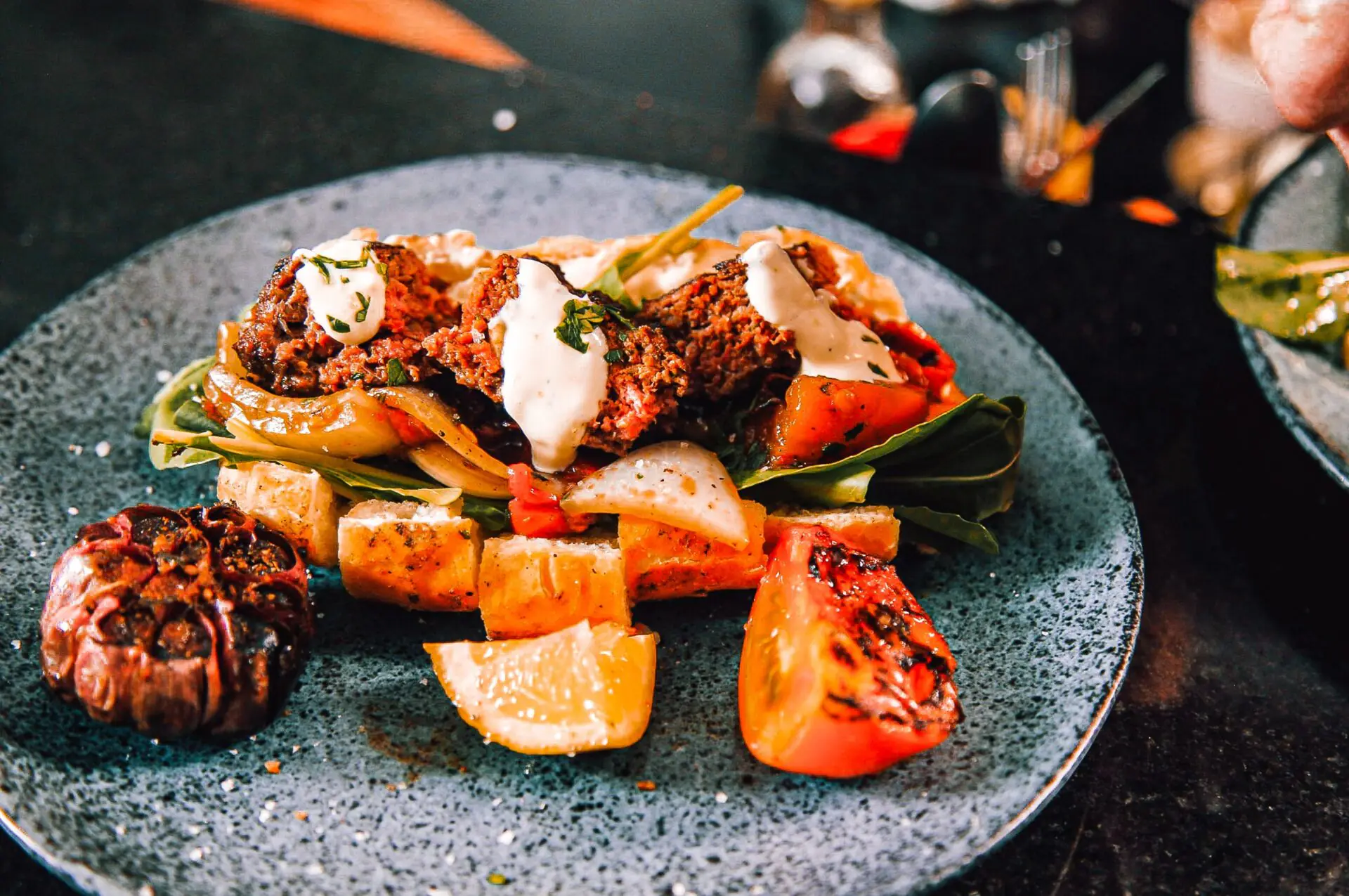 Kebab com salada de legumes tostados