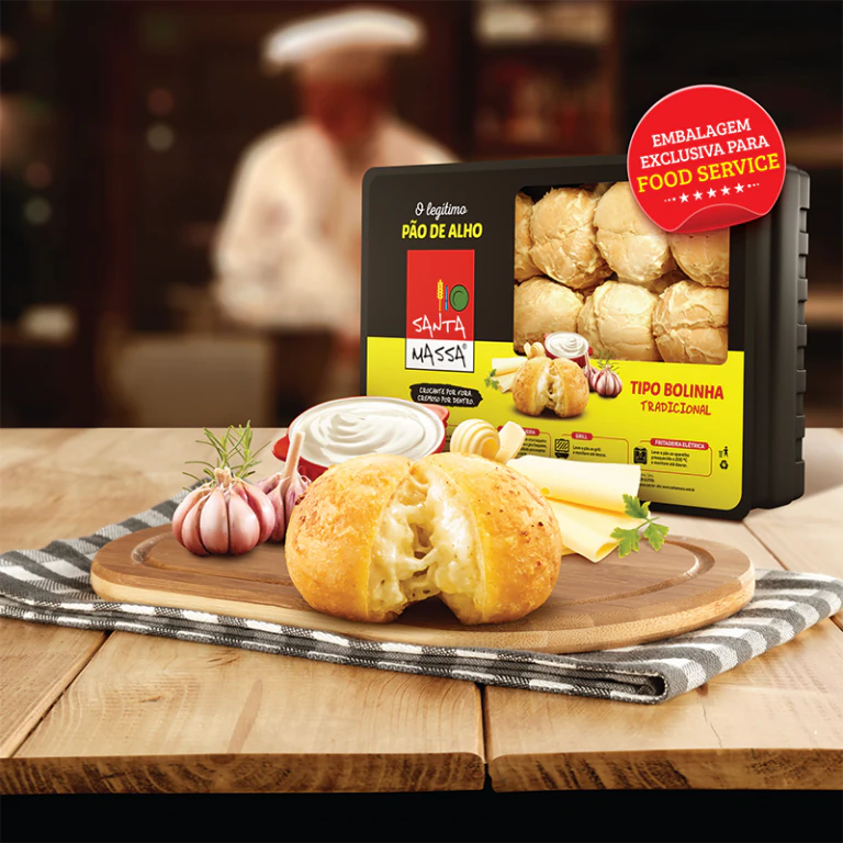 Com embalagem exclusiva para Food Service, a Santa Massa inova mais uma vez e traz o sabor legítimo do pão de alho, na versão bolinha.